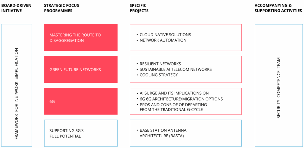 - evaluates and drives technology evolution toward 5G’s full implementation and within the three Strategic Focus Topics: